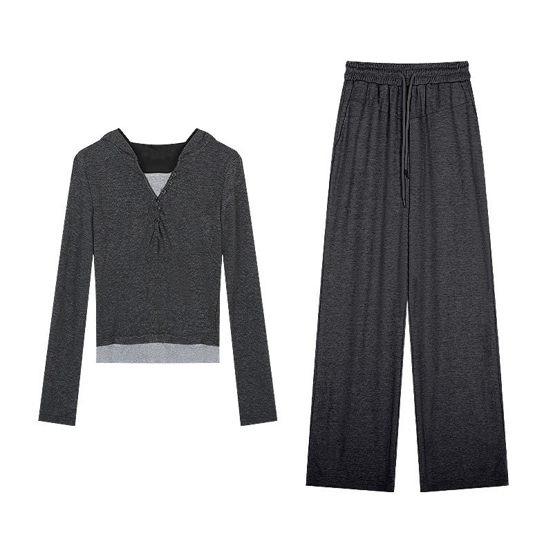 طقم من قطعتين من سويت شيرت وبنطلون كاجوال عصري بغطاء للرأس