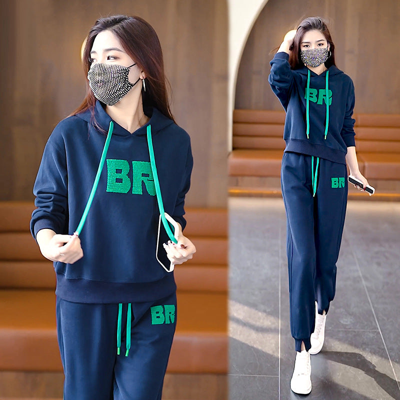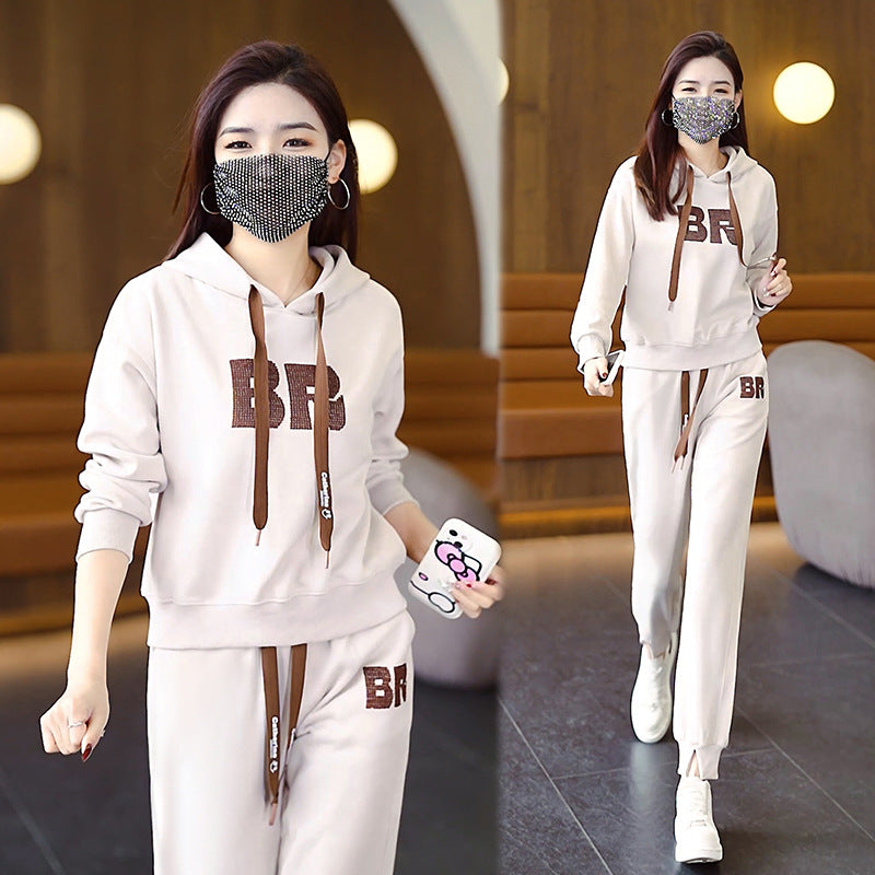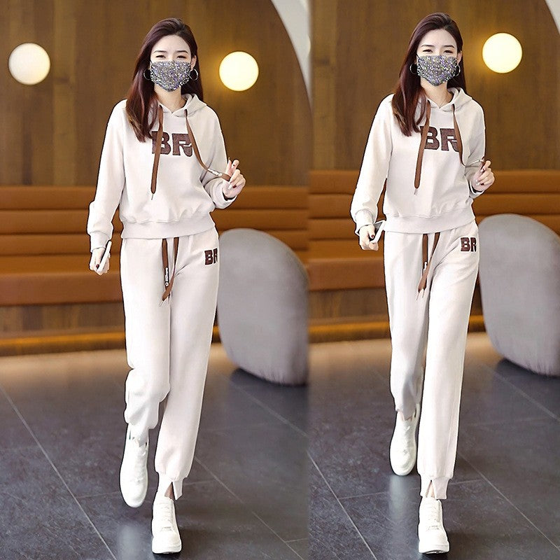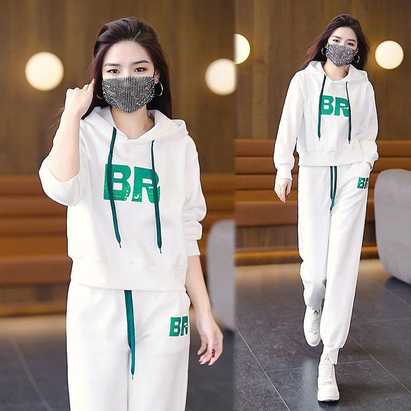ae772-بدلة رياضية كاجوال للسيدات، بدلة عصرية وفضفاضة مكونة من قطعتين