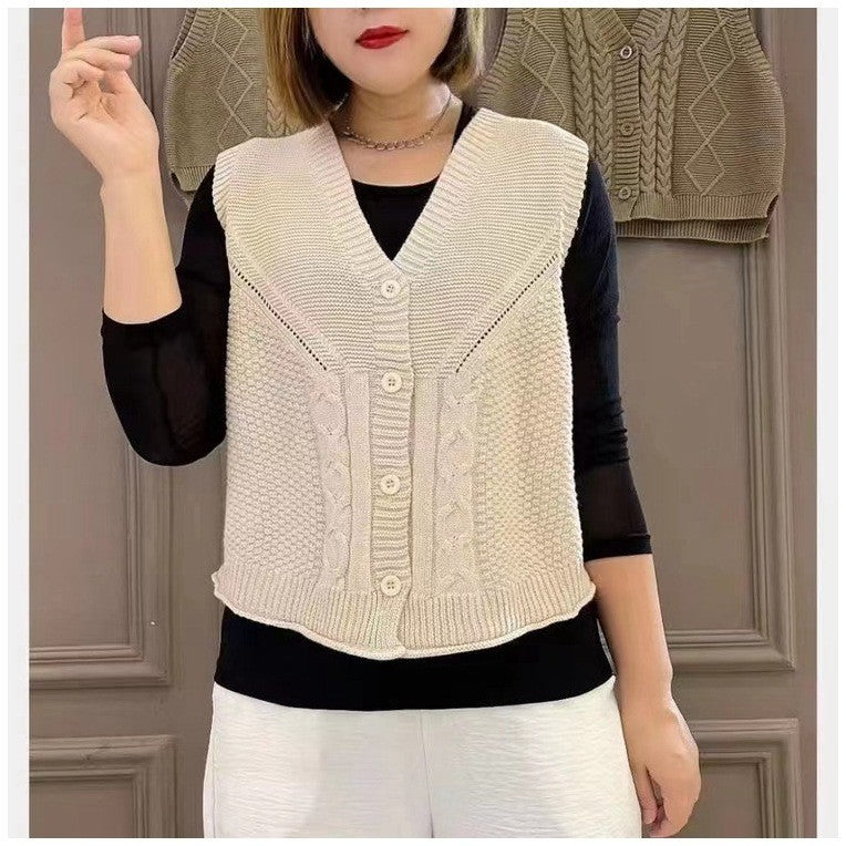 ae830-Ladies Casual Solid Color Knitted Vest