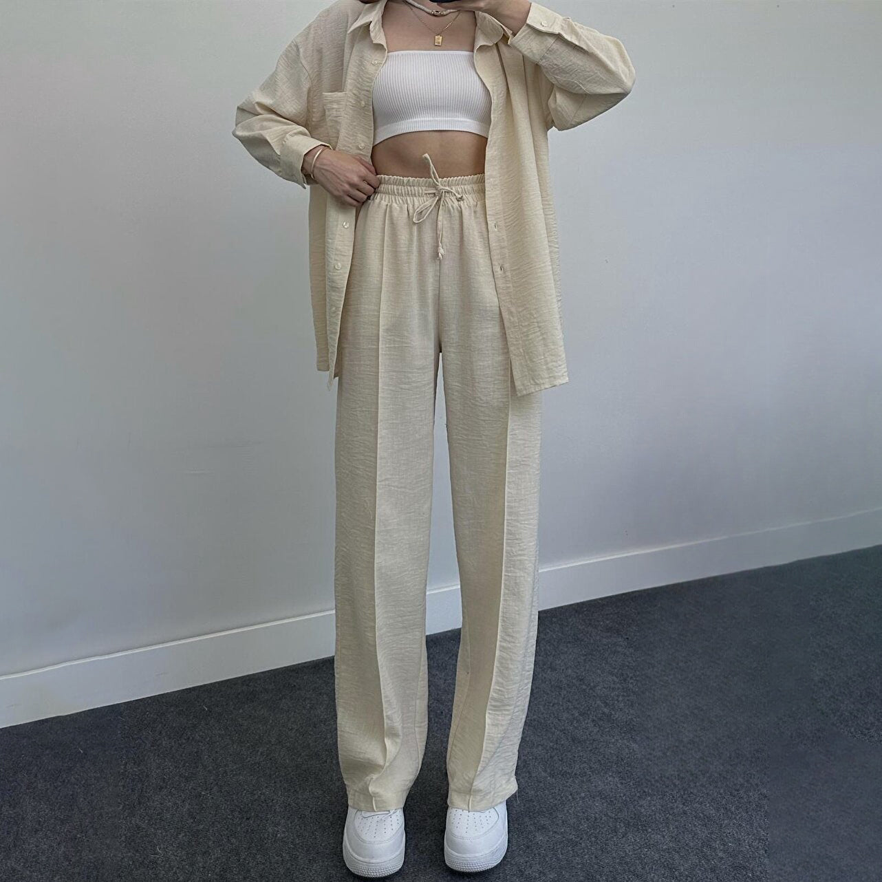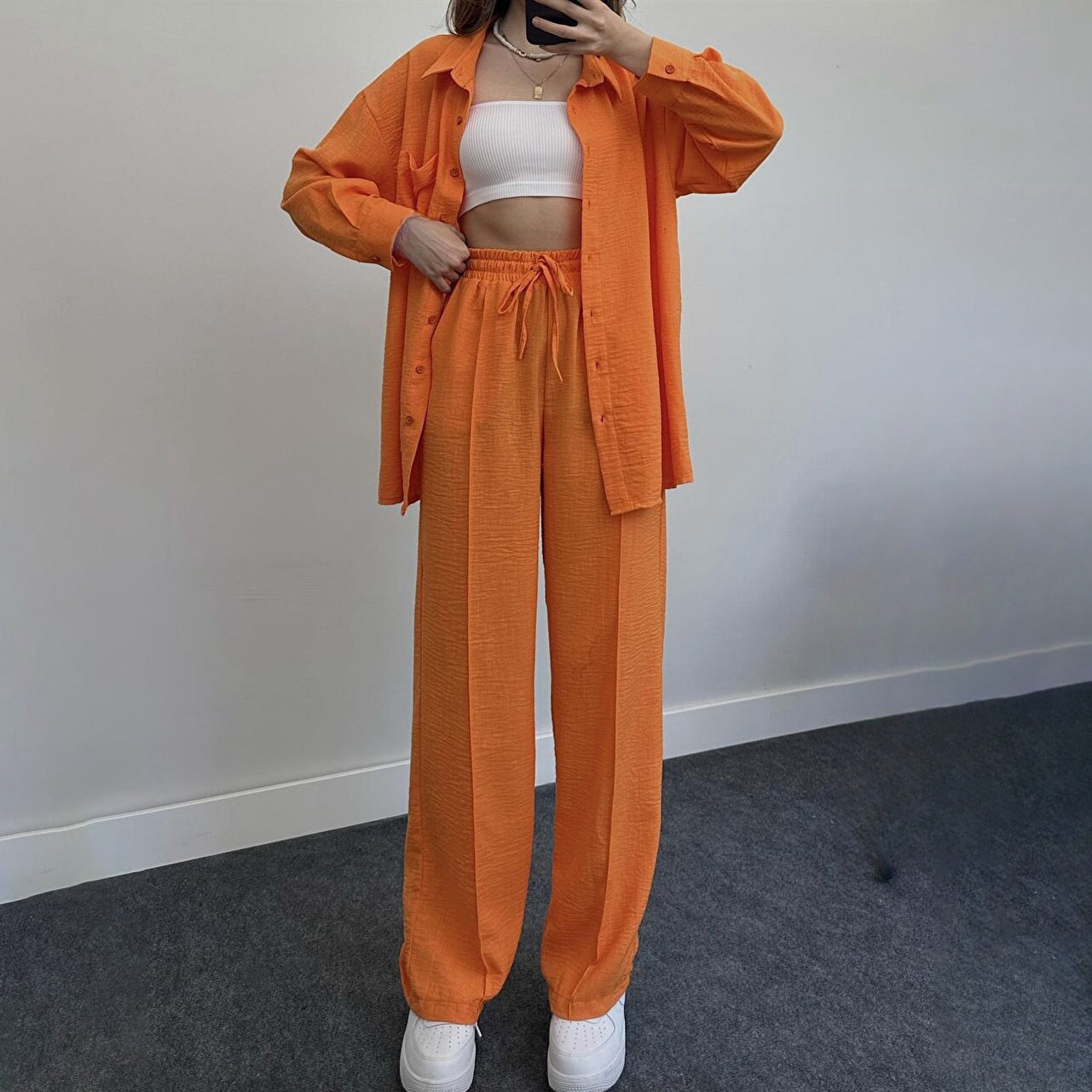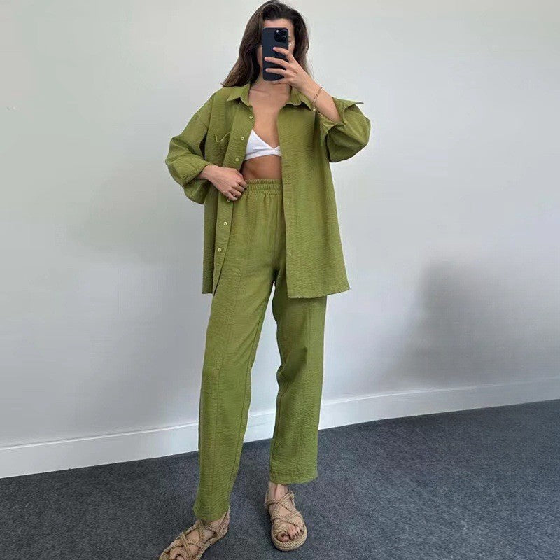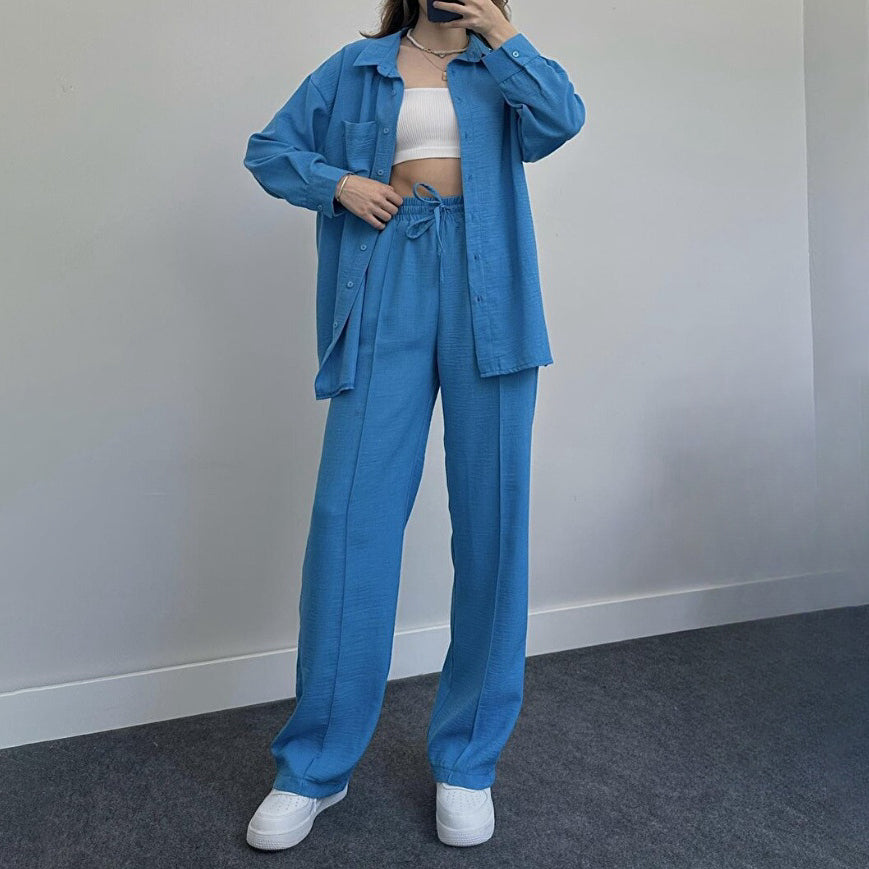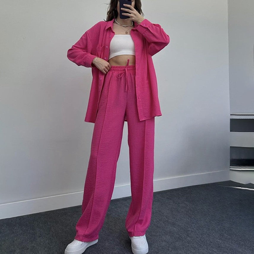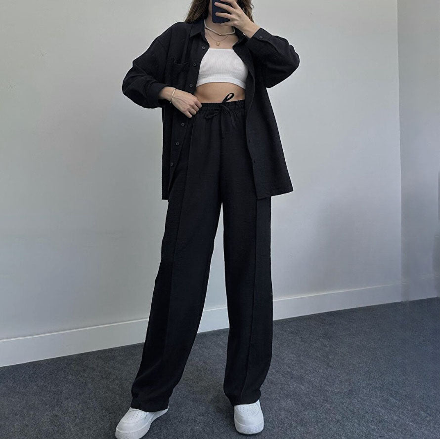 fam6-Loose Fashion Casual Women's Shirt Pants Set