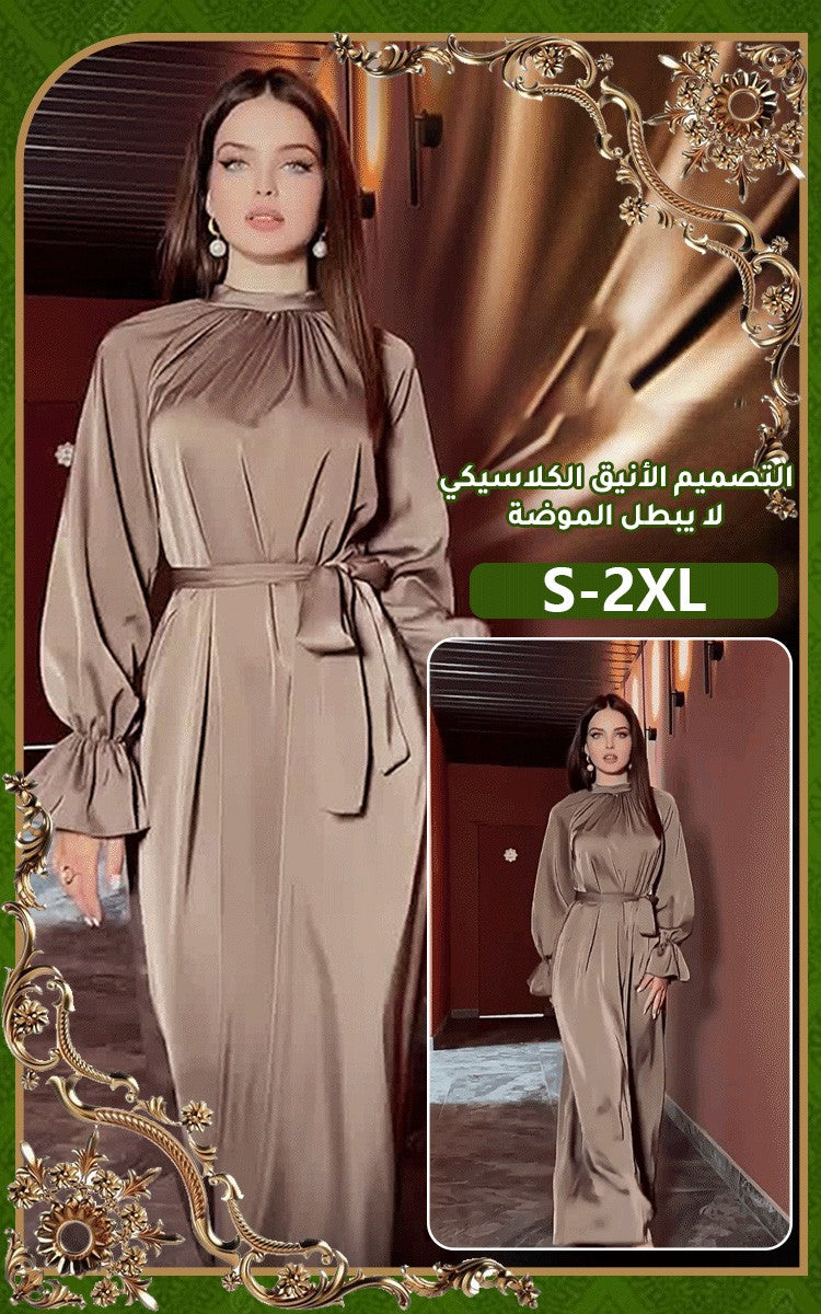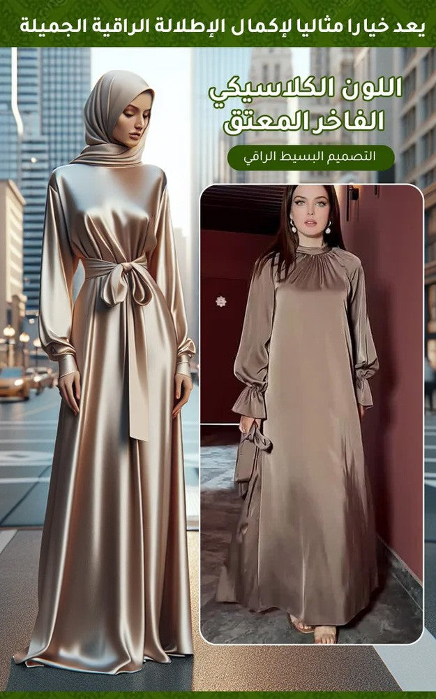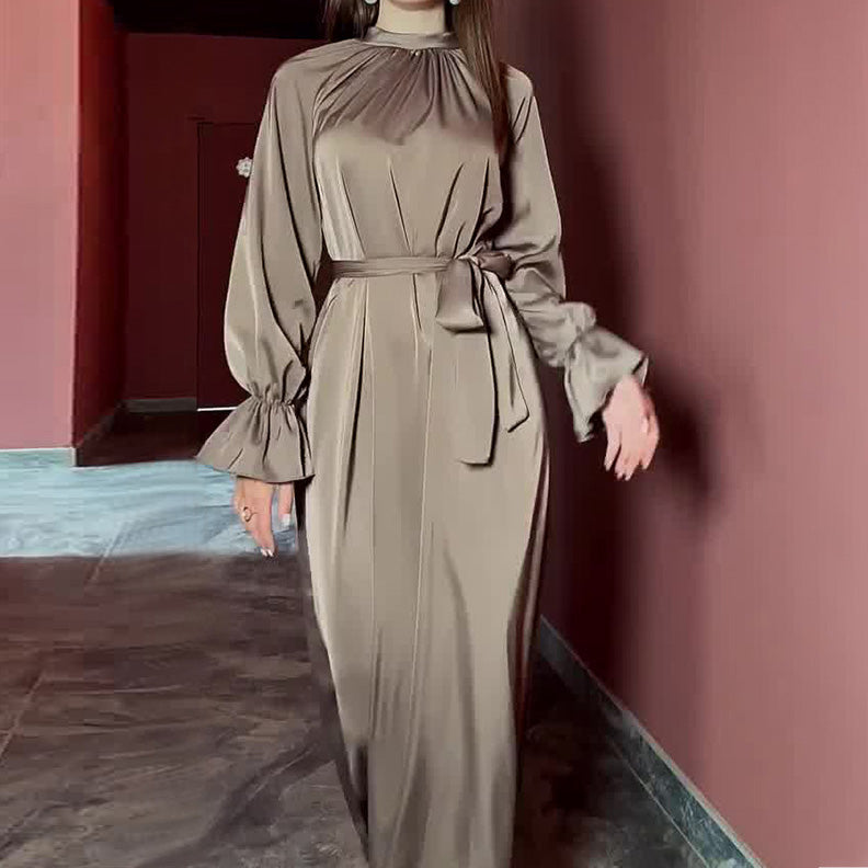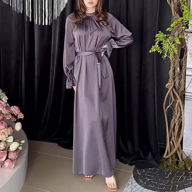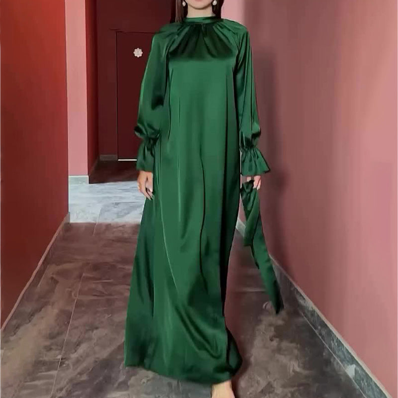 go34-Solid Color Satin Long Sleeve Loose Dress