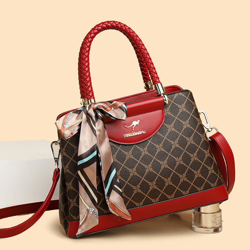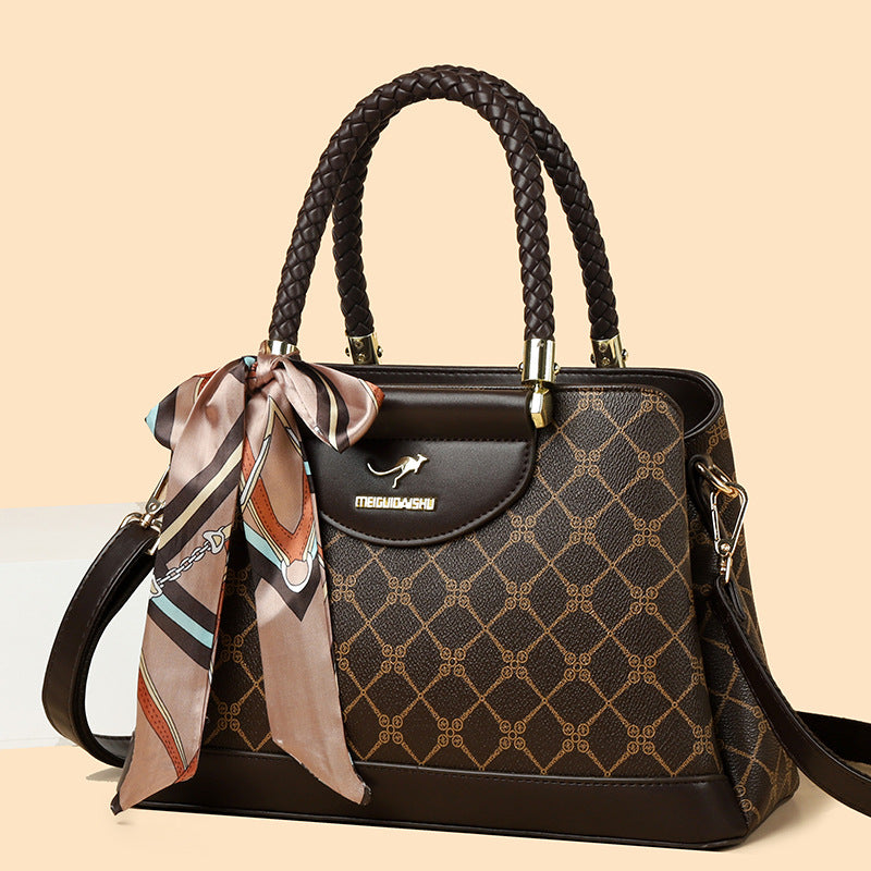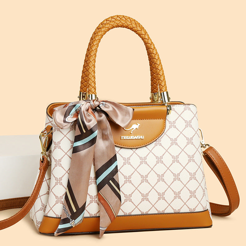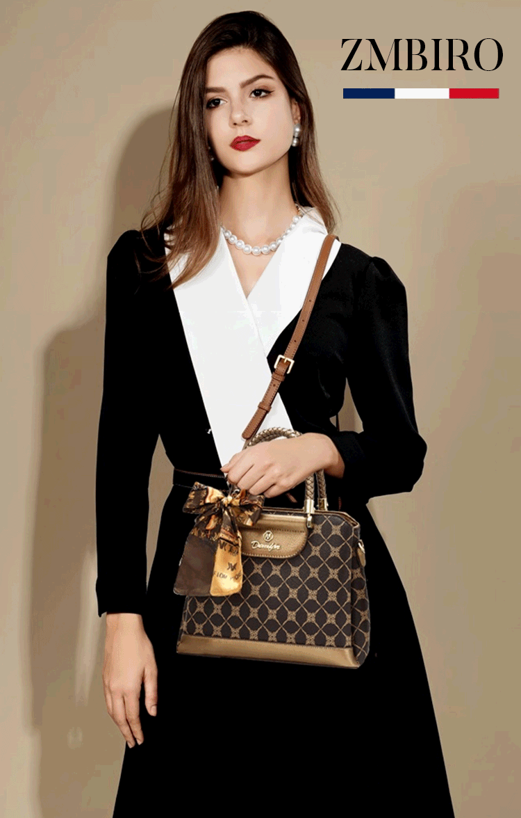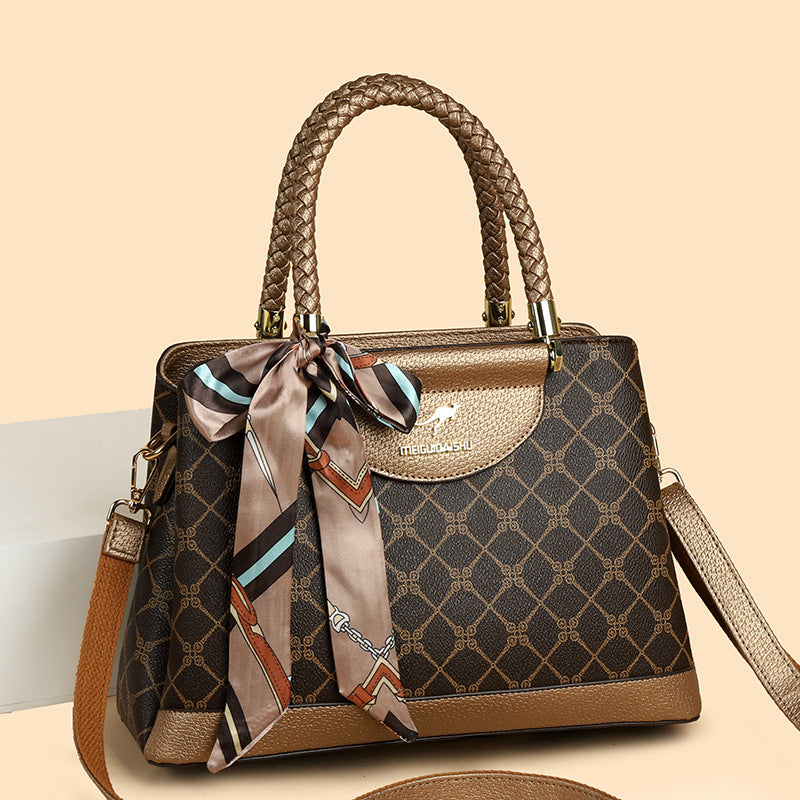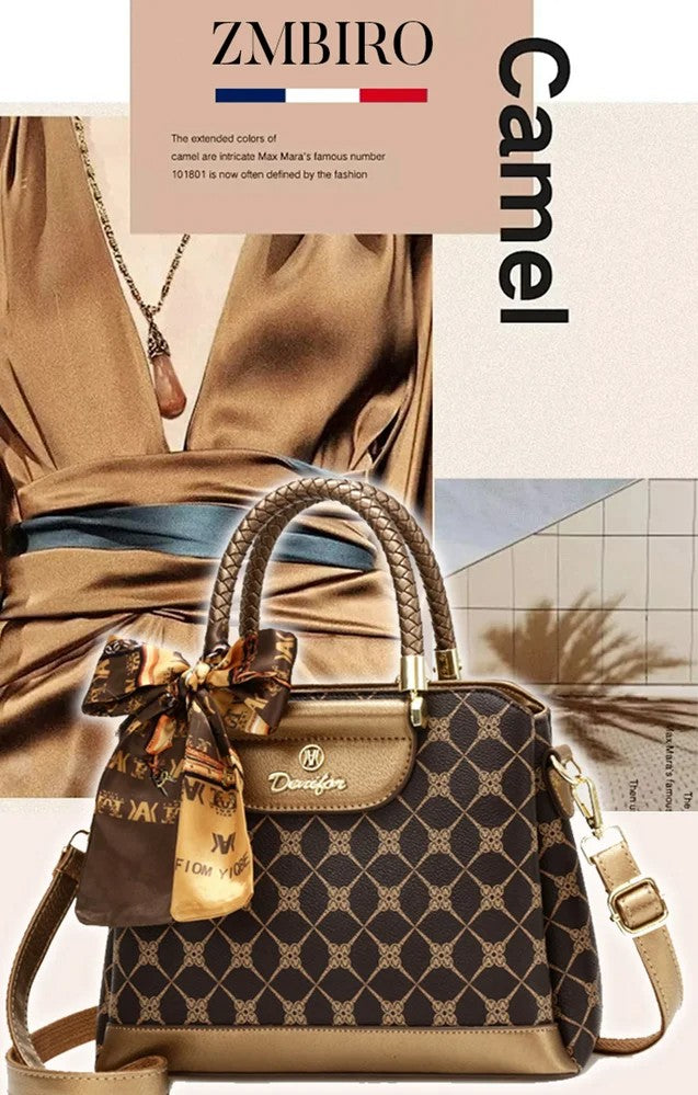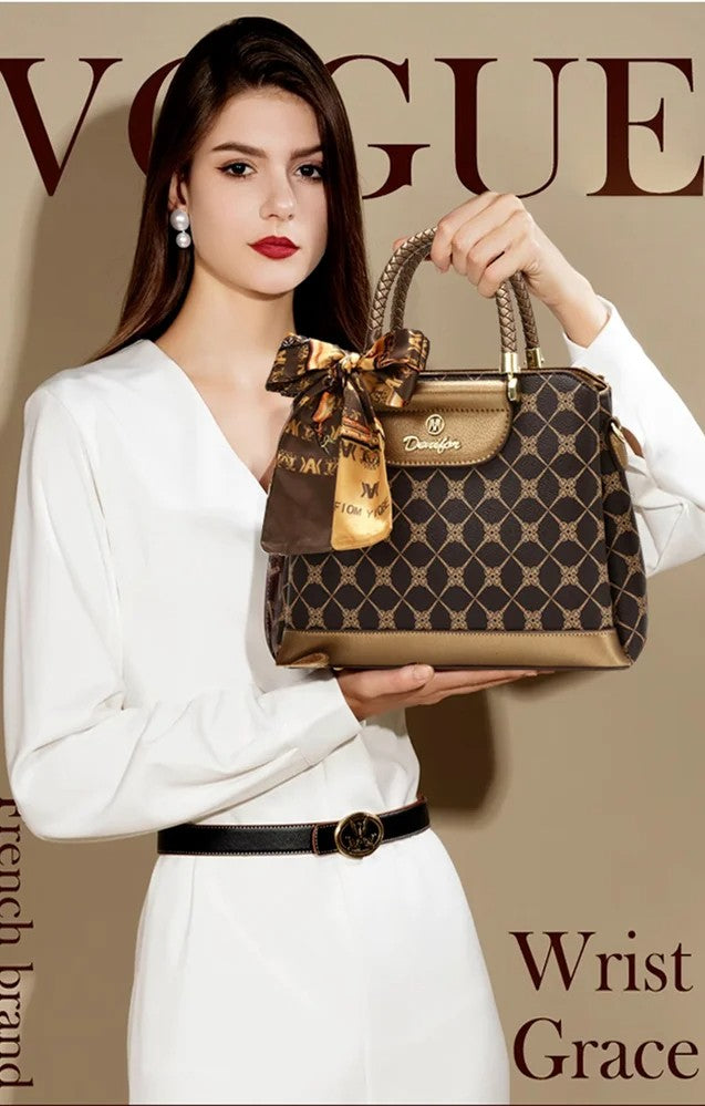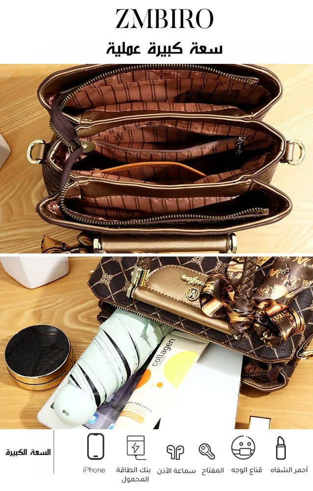 حقيبة شبه منحرفة منقوشة ذهبية ذات سعة كبيرة وأقسام ومتعددة