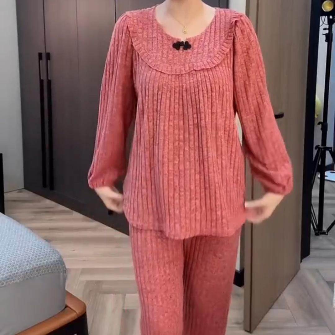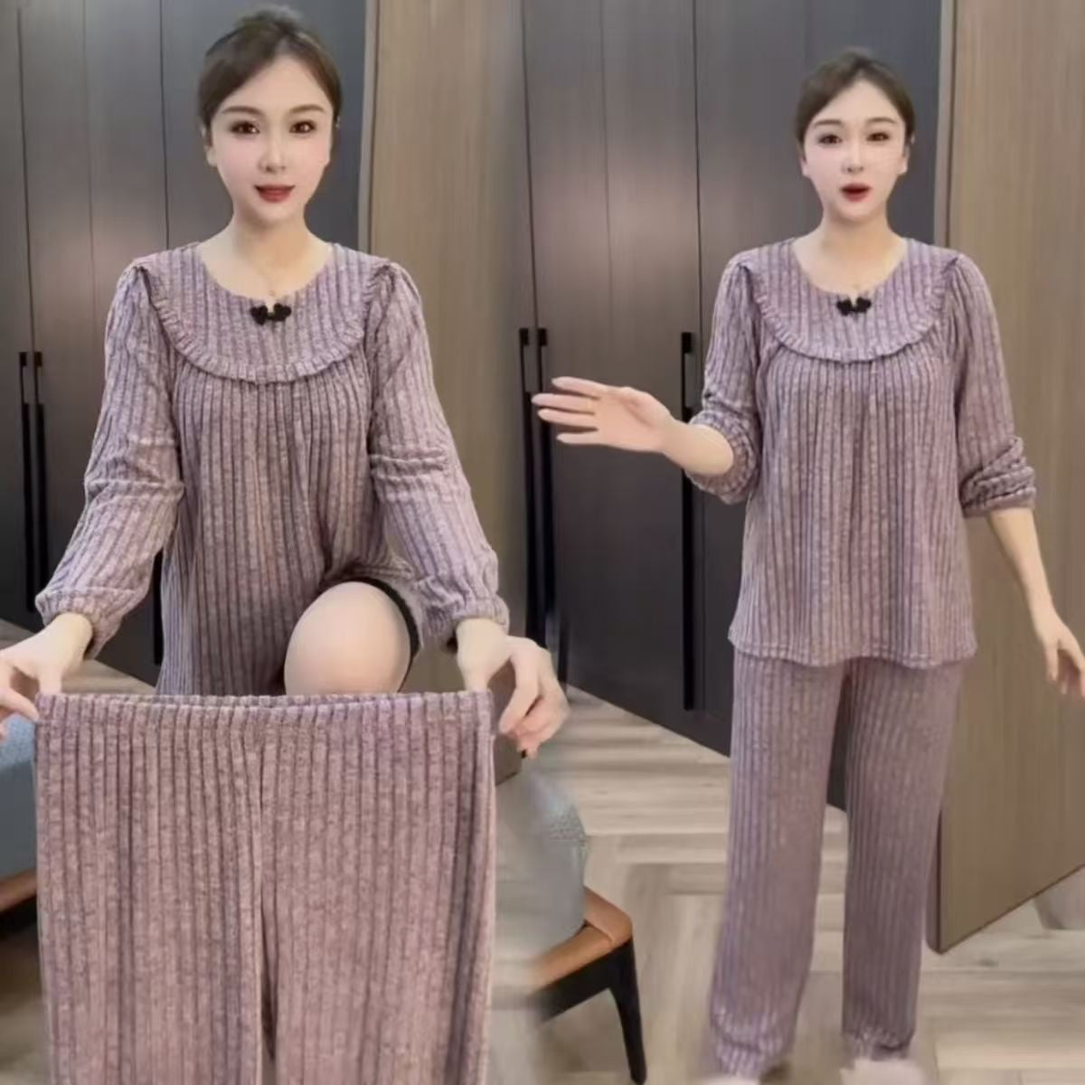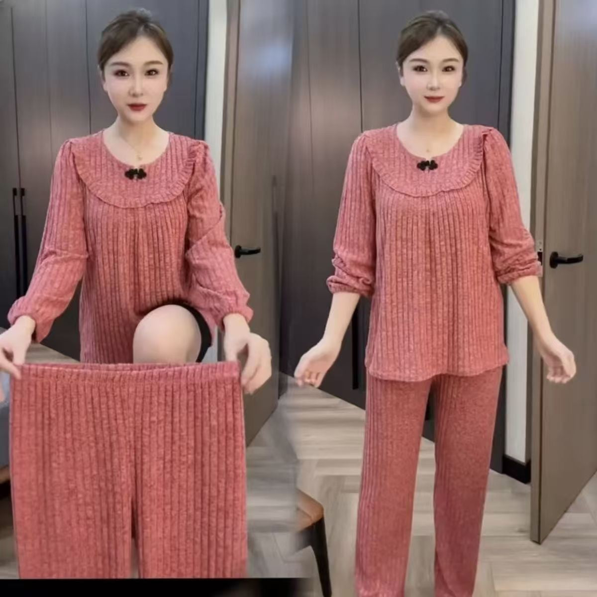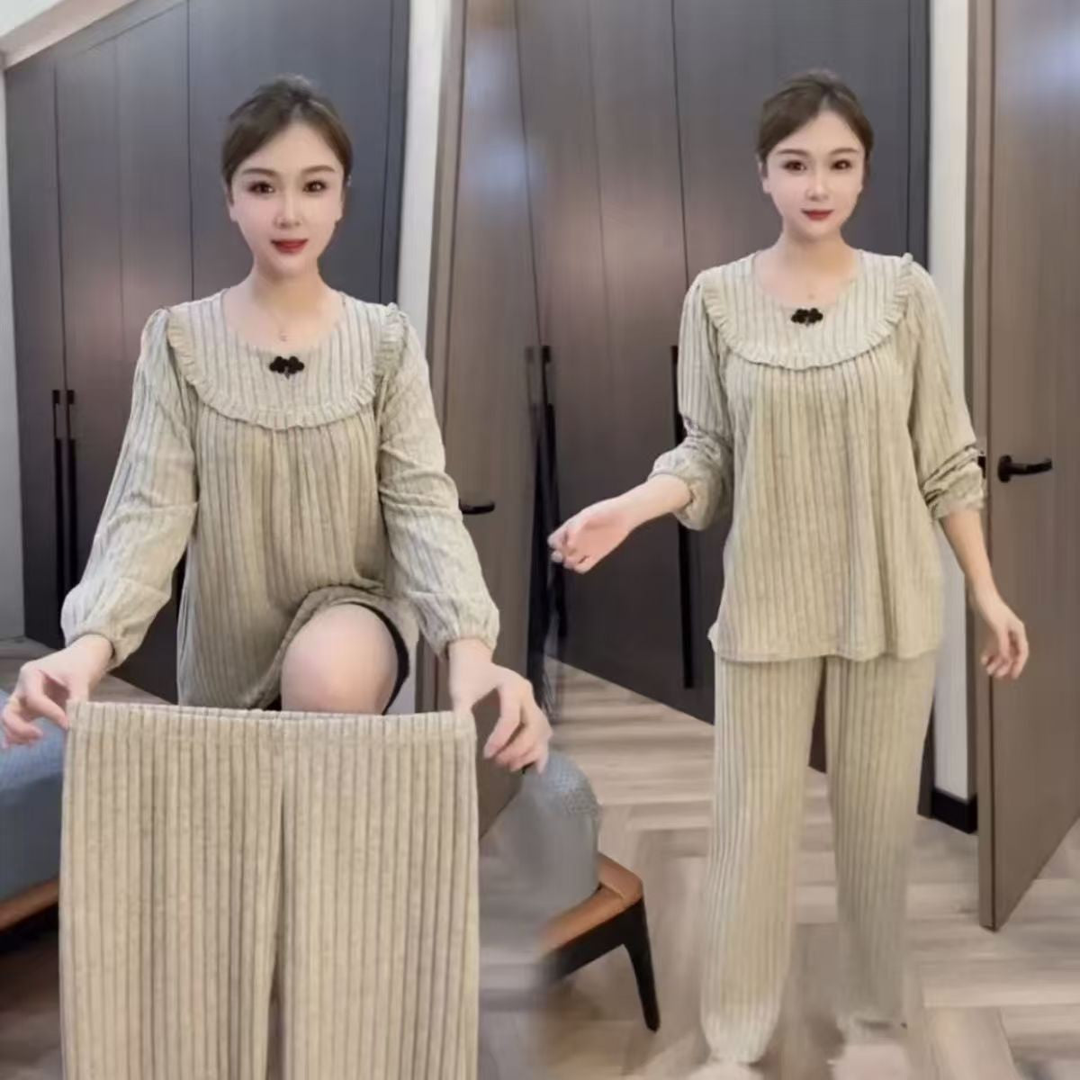 zp588-2025 Ladies New Snowflake Velvet Round Neck Pajamas Set