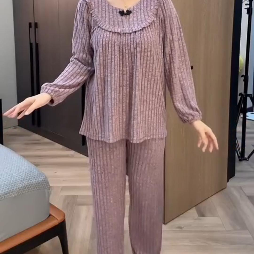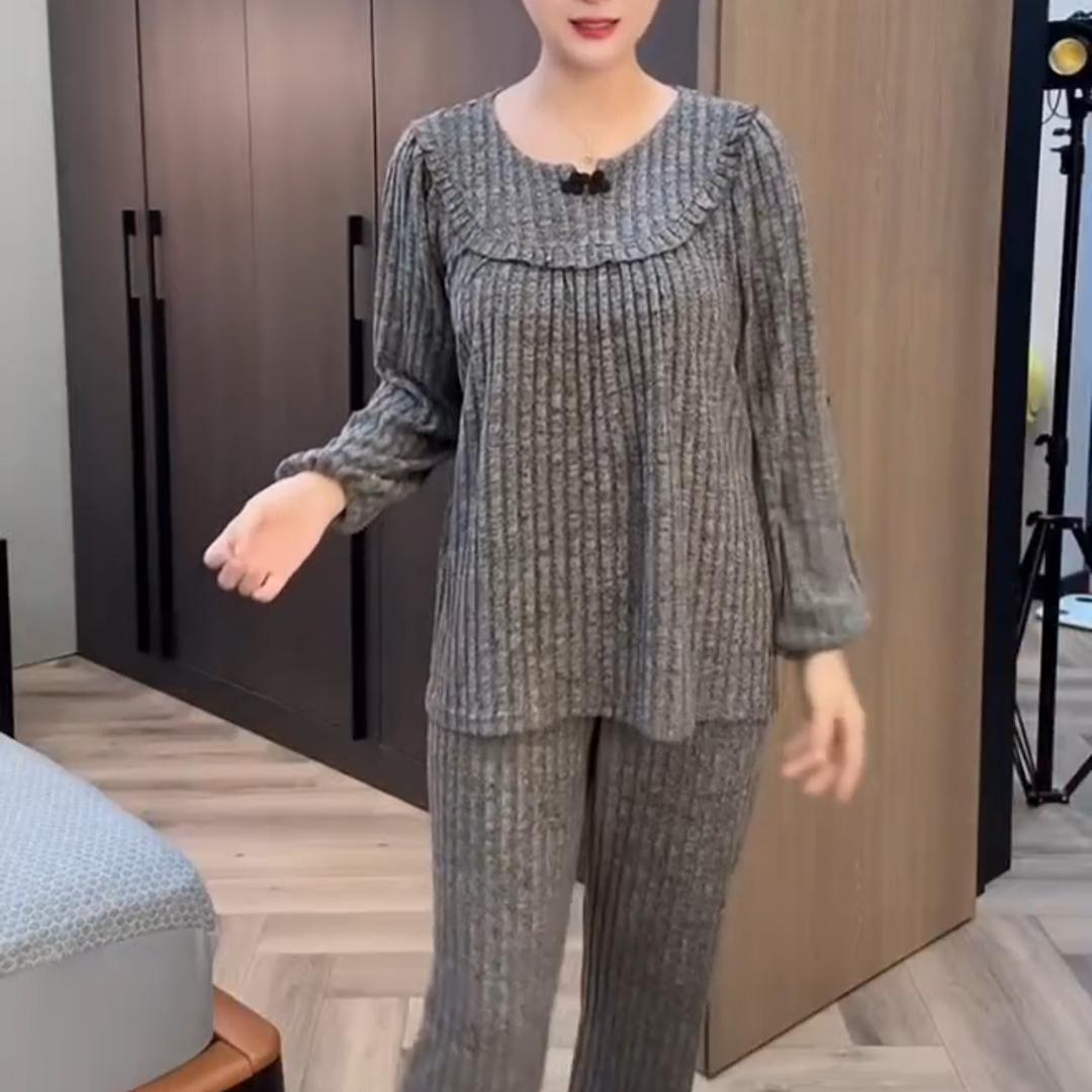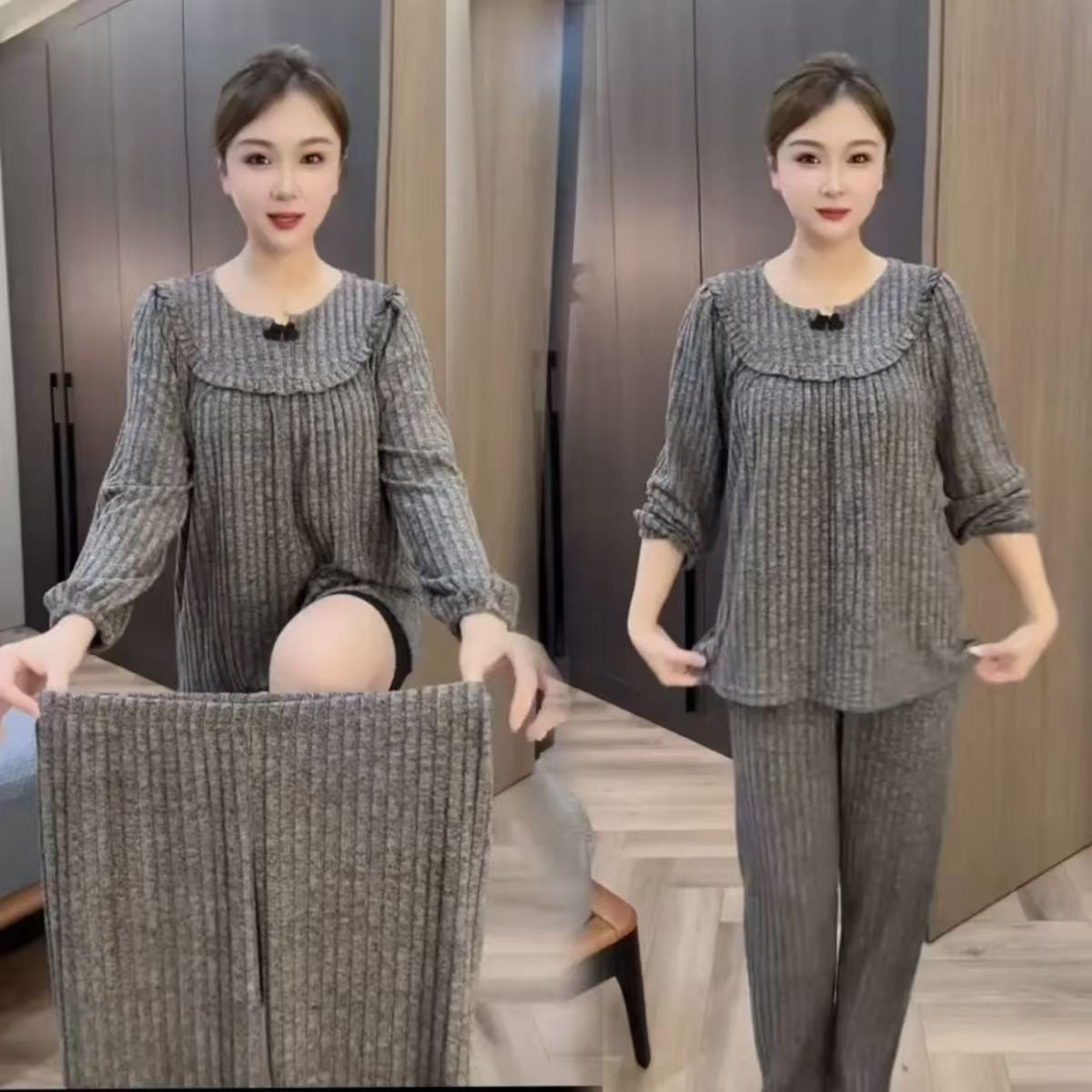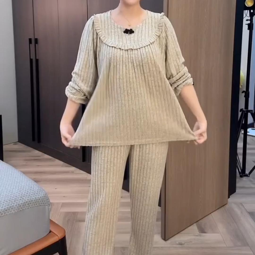 zp588-2025 Ladies New Snowflake Velvet Round Neck Pajamas Set