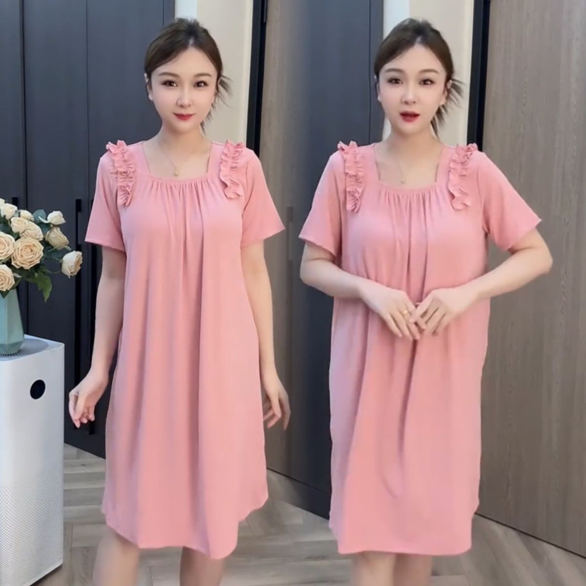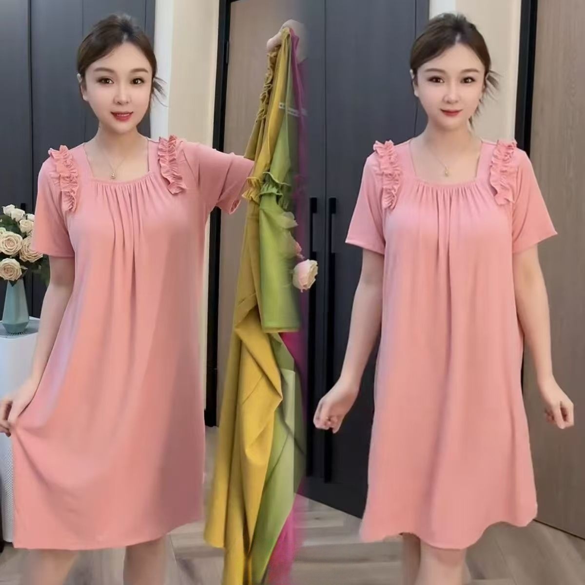 zp595-Ladies summer thin short sleeve nightdress