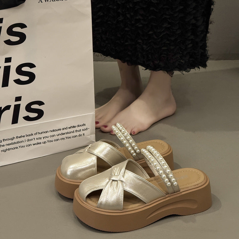 zp636-Women's summer retro thick-soled fashionable closed-toe sandals