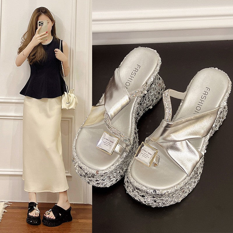 zp639-Summer Fashion Rhinestone Casual Platform Wedge Sandals